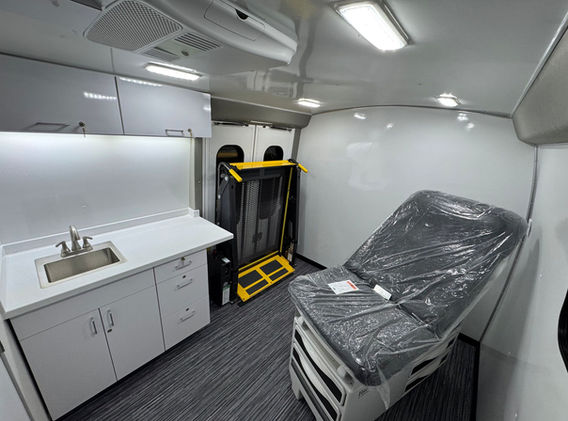 Meet the Ford F-550 mobile unit: a wheelchair-accessible marvel spanning 37 feet of unmatched comfort and functionality for staff and clients alike, featuring two expansive private exam rooms plus a versatile central lab or waiting area. Surprisingly easy to navigate, it’s perfect for operations with substantial parking space, excelling in diverse applications like dentistry, primary care, employee wellness, school initiatives, and more. Inside, relish the tranquil ambiance created by sound-dampening, temperature-controlling walls, coupled with a resilient, corrosion-proof fiberglass exterior. Crafted with medical professionals in mind, the interior showcases easy-maintenance walls, superior Corian countertops, and a generous 80" ceiling height, not to mention a standard lavatory.